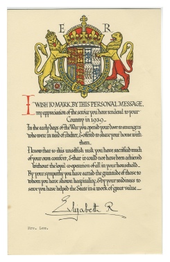 Certificate issued to Mrs Lee of Bridge St., Haltwhistle in thanks for taking in evacuees.
