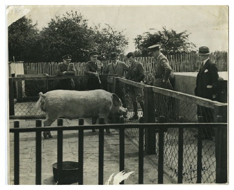J.M. Clark inspecting a pig for the Ministry of War– Dig for Victory campaign.