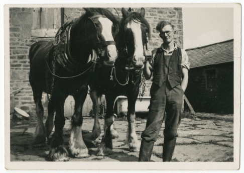 “We did everything with the horses. Ploughing, working the land, cutting the hay, turning the hay –it was all loose and built into pikes then led in with the horse and bogie and a lot of it was forked onto lofts as well as into the barns.” Coulson Teasdale